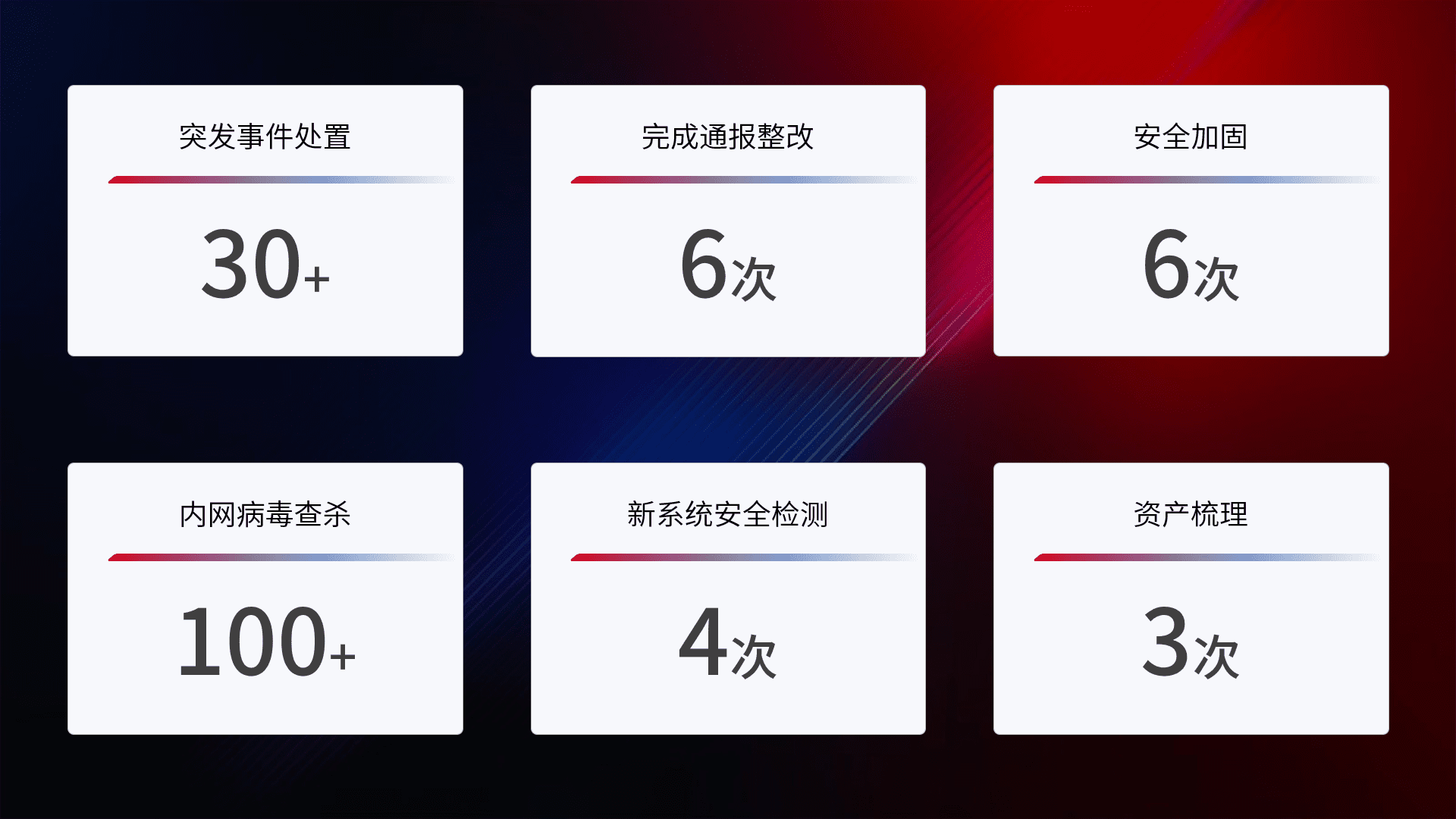 网络安全加固与风险管理:通过技术加固手段,,,,如加强区域隔离,,,缩减攻击内网横向移动的范围;优化现有网络安全管理制度,,降低网络威胁暴露面,,,减少被黑客攻击的可能性。。